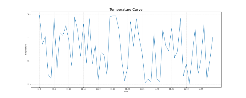 需求:画出某城市 11 点到 12 点 1 小时内每分钟的温度变化折线图,温度范围在 15 度~18 度